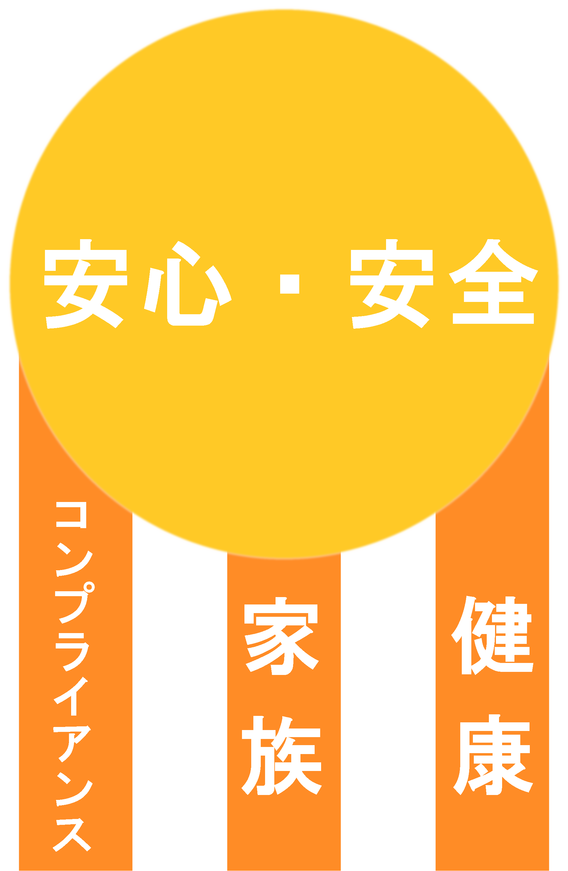 この球体を放置すれば、右往左往に転がって不安定。そこで、コンプライアンス・家族・健康の3つの柱で球体を支えます。